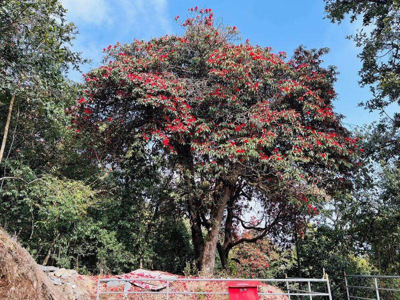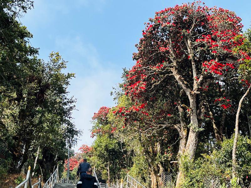 गुल्मी । गुल्मीको पर्यटकीय क्षेत्र रेसुङ्गा जङ्गलमा लालीगुराँसले ढाकिएका सुन्दरता । ढकमक्क फूलेको लाली गुराँस हेर्नका लागि यस क्षेत्रमा आन्तरिक एवम् बाह्य पर्यटकको घइँचो लाग्ने गर्दछ । तस्बिर : जनार्दन घिमिरे/ रासस