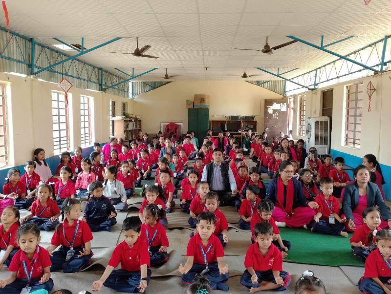 रामपुर (पाल्पा) । पाल्पाको रामपुर नगरपालिका–५ स्थित मटेरीमा अवस्थित रामपुर आधारभुत विद्यालयका विद्यार्थी योगाभ्यास गर्दै । यहाँको विद्यालयले विद्यार्थीलाई प्रार्थना समयमा योगाभ्यास गराउन थालेको छ । तस्बिर : सुशीला रेग्मी/रासस