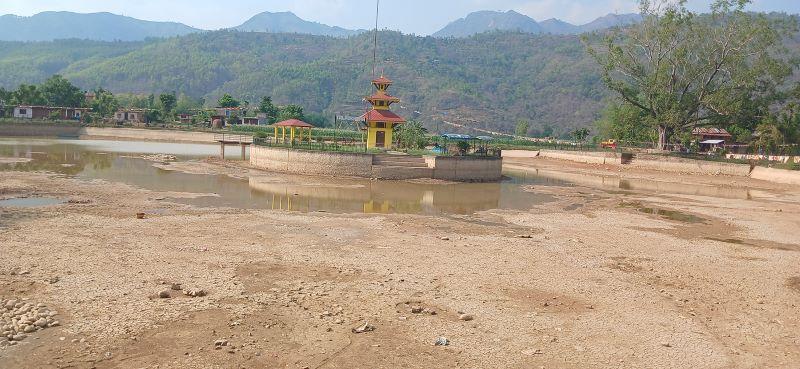 रामपुर (पाल्पा) । पाल्पा रामपुर नगरपालिकाको पर्यटकीय क्षेत्र तालपोखरामा खडेरीले पानी सुकेपछिको उजाड दृश्य । तालपोखरामा पानी सुकेपछि डुङ्गा सञ्चालन ठप्प छ । तस्बिर : सुशीला रेग्मी/रासस
