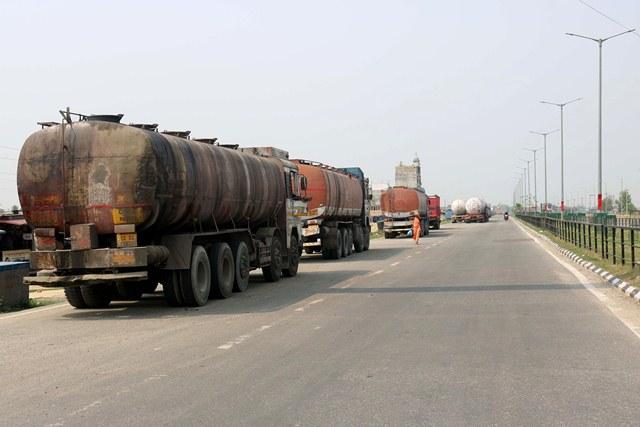 वीरगञ्ज (पर्सा) । वीरगञ्जस्थित एकीकृत जाँचचौकी जानका लागि लामबद्ध मालवाहक पेट्रोलियम पदार्थ तथा ग्याँसका बुलेट बोकेका मालवहाक सवारीसाधन । एकीकृत जाँचचौकी ११५ विघा क्षेलफलमा फैलिएको छ । तस्बिर : हिमाल लम्साल / रासस