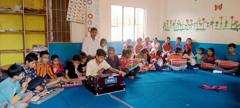 रामपुर (पाल्पा) । रामपुर आधारभूत विद्यालय पाल्पाका विद्यार्थी वर्षे विदाको समयमा सङ्गीत सिक्दै । घरमा बालबालिकालाई मोबाइल चलाउने बानी हटाउन र रचनात्मक कार्य गराउन विद्यालय विदाको समय बिहानमा विद्यालयले सङ्गीत कक्षा सञ्चालन गरिरहेको छ । तस्बिर : सुशीला रेग्मी/रासस