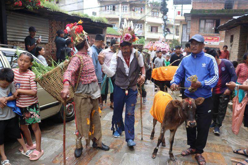 काठमाडौं । काठमाडौंको तारकेश्वरस्थित मङ्गलबार नेवारी समुदायको परम्परागत सांस्कृतिक पर्व ‘गाईजात्रा’ मनाइँदै ।