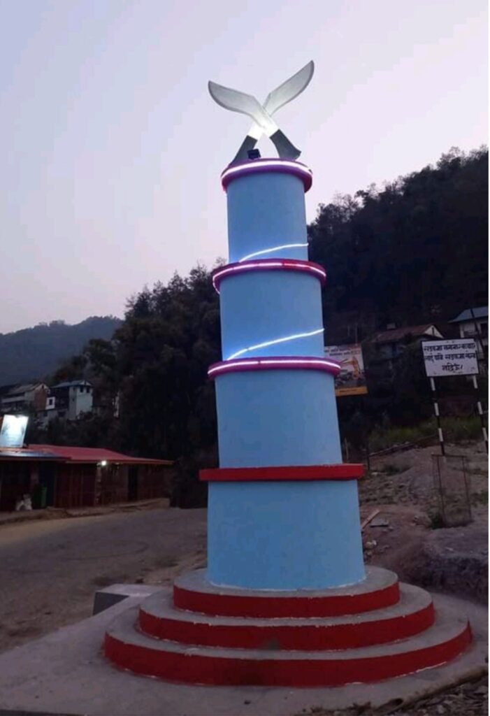 भोजपुर । भोजपुरको पहिचान झल्काउने उद्देश्यले सदरमुकामको देउरालीमा राखिएको खुकुरी । तस्बिर : युवराज विष्ट/रासस