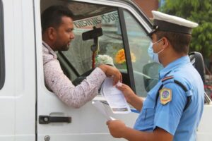 कञ्चनपुर । सडक दुर्घटना न्यूनीकरणाका लागि पूर्व पश्चिम राजमार्गको झलारी सडक खण्डमा ट्राफिक नियमसम्बन्धी पर्चा गाडी चालकलाई वितरण गर्दै ट्राफिक प्रहरी । प्रहरीले दुर्घटनाका घट्ना बढ्न थालेपछि सचेतना अभियान सञ्चालन गरेको छ । तस्बिर : राजेन्द्रप्रसाद पनेरु\रासस
