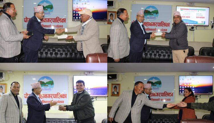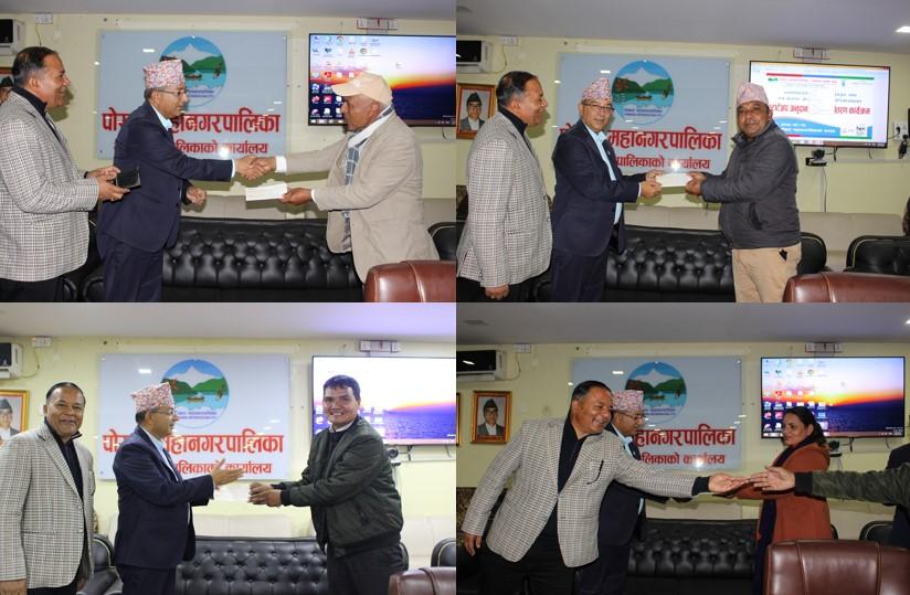 पोखरा महानगरपालिका अन्तर्गत व्यवसाय प्रवर्द्धन केन्द्र (बिपिसी) द्वारा प्रकाशित सूचनाको आधारमा सूचीकृत भई छनौटमा परेका २४ वटा व्यक्ति तथा फर्महरूलाई अनुदान उपलब्ध गराइएको हो ।