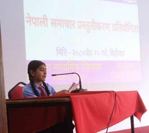रेडियो तथा टेलिभिजनमा समाचार वाचकले झै नेपाली भाषामा कक्षा ६ देखि ८ कक्षासम्म अध्ययनरत ८९ जना विद्यार्थीहरुले विभिन्न पत्रिकामा प्रकाशित समाचारहरुलाई आधार बनाइ समाचार वाचन गरेका थिए ।