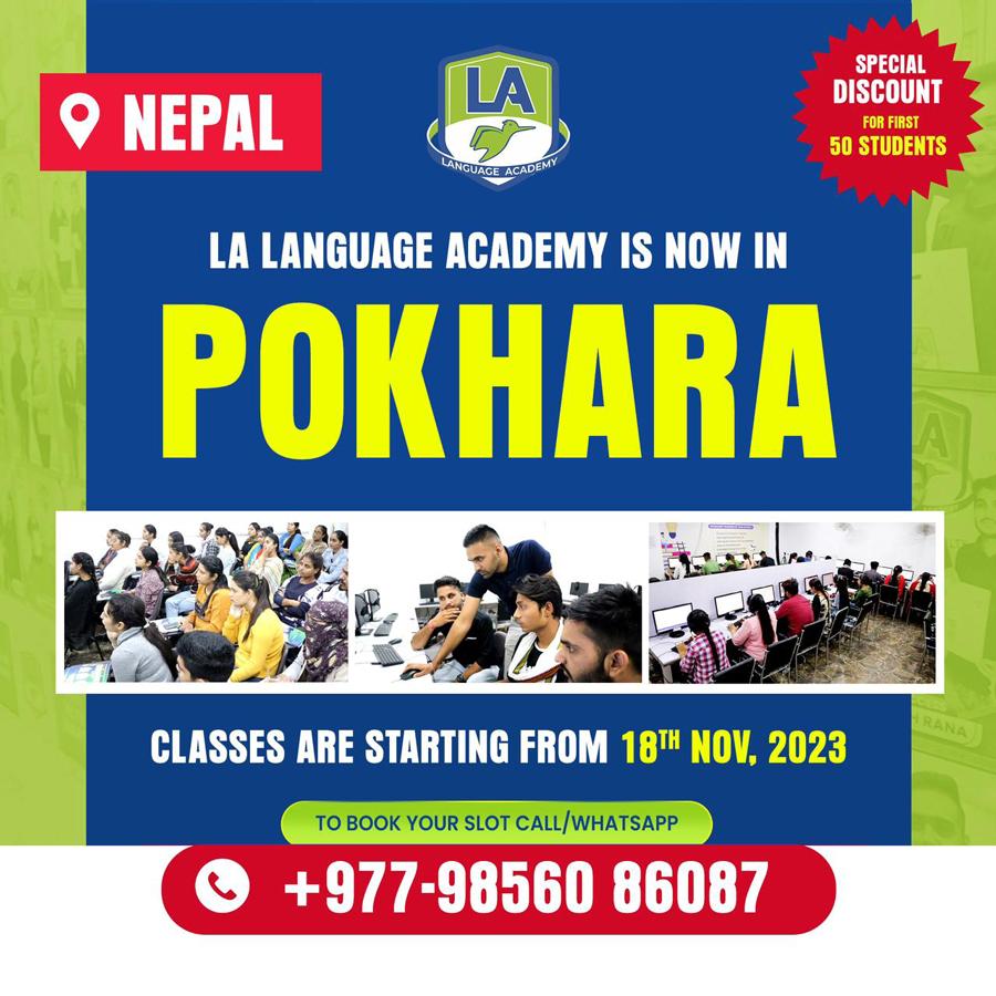 विदेश अध्ययन गर्न जाने विद्यार्थीले भाषा तयारीका लागि ल्याङवेज एकेडेमीलाई प्राथमिकतामा राख्दै आइरहेका छन् । पिटिईका लागि ल्याङवेज एकेडेमी संसारकै अग्रणी कम्पनीका रुपमा स्थापित छ । अत्याधुनिक ल्याबसहित पिटिइ तयारी कक्षा सञ्चालन भइरहेको कम्पनीले जनाएको छ । ‘पिटिइ तयारी कक्षाका लागि ल्याङवेज एकेडेमी पोखरा क्षेत्रका विद्यार्थीहरुको लागि पनि अबको दिनमा पहिलो रोजाईमा पर्नेमा हामी विश्वस्त छौं,’ थापाले भने ।