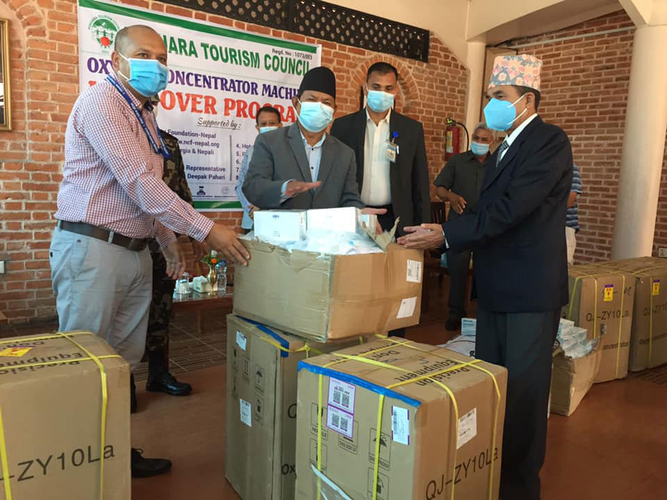 पोखरा । पर्यटन तथा निजी क्षेत्रको छाता संस्था पोखरा पर्यटन परिषदको पहलमा छिमेकी राष्ट्र चिनबाट आयात भएका कोरोना संक्रमितको लागि अत्यावश्य अक्जिसन कन्सन्ट्रेटर मेशिन सहित आवश्यक स्वास्थ्य सामग्रीहरु हस्तान्तरण गरिएको छ ।