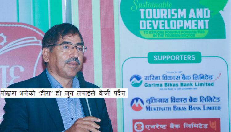 पोखरा भनेको ‘हीरा’ हो जुन तपाईंले बेच्नै पर्दैन । अघिल्लो महिना बम्बईको हीरा व्यापारी मेरो रिसोर्टमा दुई रात बसे । अनि मैले उसलाई बिहान हिमाल देखाएँ, ‘ल तिमीसँग पनि हीरा छ, हामीसँग पनि छ । फरक यत्ति हो तिमी तिराएर बेच्छांै, हामी देखाएर बेच्छौं ।’ उसले ताली बजायो । हामी हिमाल देखाएर पर्यटन क्षेत्र बेच्न सक्छौं ।