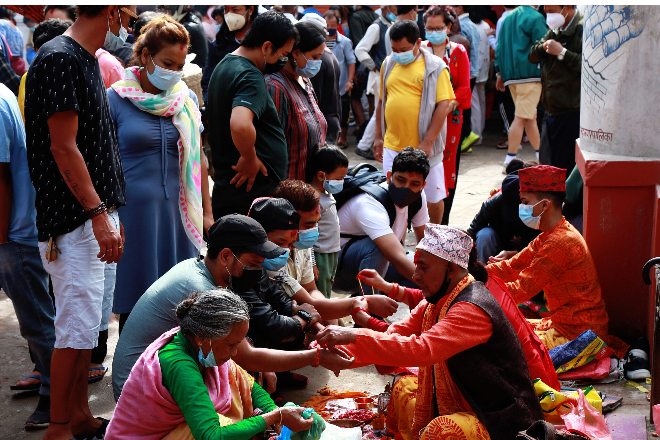 राखी लगाइँदै काठमाडौं । राखी लगाइँदै । तस्वीर : अरुण कुमार यादव,रासस जनै पूर्णिमाका दिन आइतबार बङ्गलामुखी मन्दिर परिसरमा भक्तजनलाई डोरो बाध्दै पुरोहित । तस्बिर: प्रदीपराज वन्त/रासस
