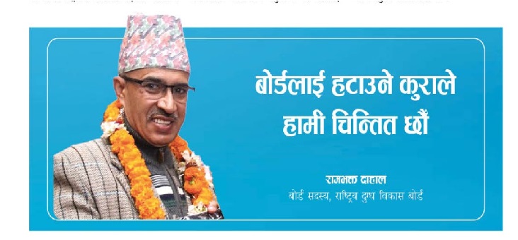 धानपछिको महत्वपूर्ण कृषि क्षेत्रको रूपमा रहेको दुग्ध क्षेत्रमा ५० अर्बभन्दा बढी निजी क्षेत्रको लगानी छ । ६ लाख कृषक परिवार आश्रित छन् र ५० हजारभन्दा बढीलाई निजी क्षेत्रबाट रोजगारी प्राप्त छ । यस्तो महत्वपूर्ण क्षेत्रको अभिभावकको रूपमा रहेको बोर्डलाई समय–समयमा हटाउने वा बन्द गर्ने कुराले हामी चिन्तित छौँ । दुग्ध क्षेत्रको प्रवद्र्धन र विकासमा बोर्डको अपरिहार्य भूमिकालाई राज्यले गम्भीरतापूर्वक बुझ्नुपर्छ ।