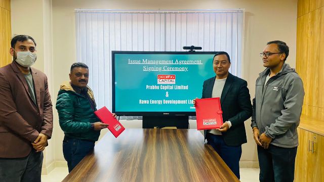 काठमाडौं । रावा इनर्जी डेभलपमेन्ट लिमिटेडले सर्वसाधारणलाई प्रारम्भिक सार्वजनिक निष्काशन गर्ने कार्यका लागि प्रभु क्यापिटल लिमिटेडलाई शेयर निष्काशन तथा बिक्री प्रबन्धकमा नियुक्त गरेको छ । सो नियुक्ति सम्बन्धी सम्झौता बुधबार सम्पन्न भएको हो । सम्झौतामा रावा इनर्जी डेभलपमेन्ट लिमिटेडका तर्फबाट कम्पनीका अध्यक्ष बद्री प्रसाद गौतम तथा प्रभु क्यापिटल लिमिटेडका तर्फबाट प्रबन्ध निर्देशक दिनेश थकालीेले हस्ताक्षर गरेका छन् ।