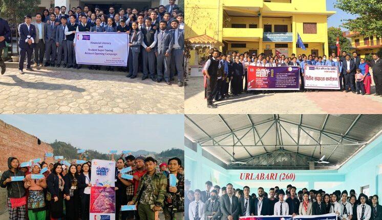 काठमाडौं । राष्ट्रिय वाणिज्य बैंक लिमिटेडले ग्लोबल मनी विकको अवसरमा देशभरी विभिन्न १३४ शाखा कार्यालयहरु मार्फत १० हजार भन्दा बढी युवा विद्यार्थी, कर्मचारी, मजदुर, कृषकहरु माझ वित्तीय चेतना अभिवृद्धि कार्यक्रम सञ्चालन गरेको छ ।