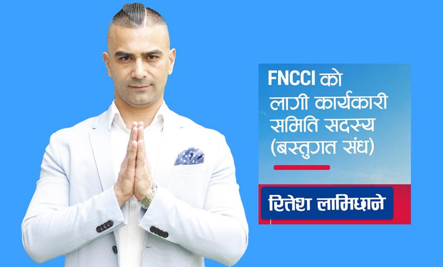काठमाडौं । नेपाल उद्योग वाणिज्य महासंघको कार्यकारिणी सदस्यमा नेपाली युवा उद्यमी मञ्चका राष्ट्रिय अध्यक्ष रितेश लामिछानेले उम्मेदवारी घोषणा गरेका छन् । लामिछानेले बस्तुगततर्फ कार्यसमिति सदस्यमा उम्मेदवारी दिने भएका हुन् ।