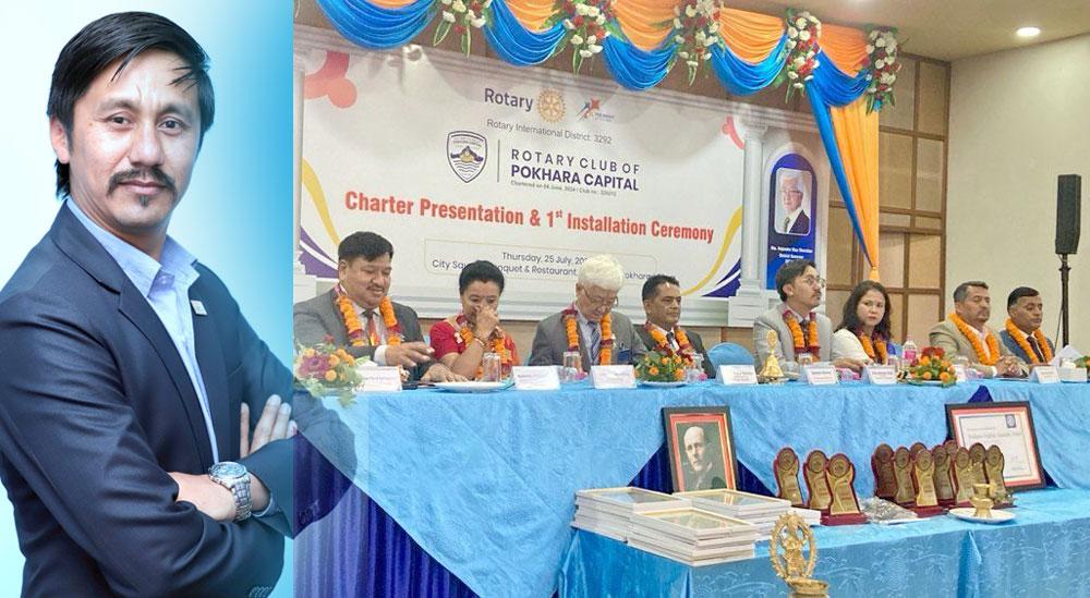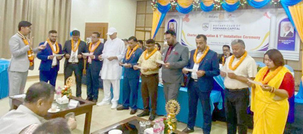 पोखरा । रोटरी क्लब अफ पोखरा क्यापिटलको चार्टर प्रेजेन्टेसन तथा पहिलो पदास्थापन कार्यक्रम सम्पन्न भएको छ । रोटरी क्लब अफ पोखरा न्यूरोडको स्पोन्सरमा पोखरामा नयाँ क्लब रोटरी क्लब अफ पोखरा क्यापिटल स्थापना भएको हो । पोखरामा रहेका विभिन्न पेशा, व्यवसाय र उमेर समूहका २३ जना संस्थापक सदस्य रहेको क्लबको संस्थापक अध्यक्ष सन्तोष शाही चयन भएका छन् ।
