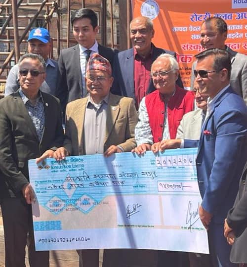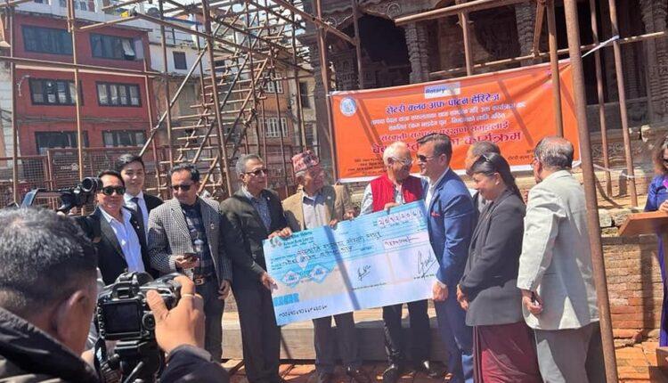 काठमाडौं । रोटरी क्लब अफ पाटन हेरिटेजले सांस्कृतिक सम्पदा संरक्षण समूहलाई रु १४ लाखको चेक हस्तान्तरण गरेको छ ।