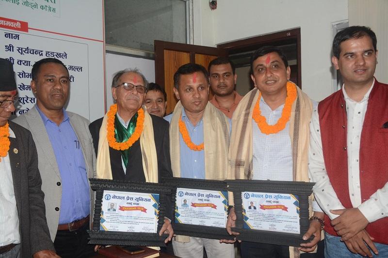 काठमाडौं– वरिष्ठ पत्रकारद्वय कुलचन्द्र वाग्ले र सुर्यचन्द्र बस्नेत गृहजिल्ला तनहुँमा सम्मानित भएका छन् । उनीहरूलाई नेपाल प्रेस युनियन तनहुँ शाखाले अधिवेशनको अवसर पारेर शनिवार सम्मान गरेको हो ।