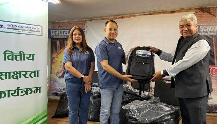 शुक्रवार बैंकले आफ्नो संस्थागत सामाजिक उत्तरदायित्व अन्तर्गत कक्षा ७, ८, ९ र १० का विद्यार्थीलाई वित्तीय शिक्षा तथा सचेतना अभिवृद्घि कार्यक्रम सञ्चालनको अवसरमा १५० थान विद्यालय झोला, ६५ वटा कापी तथा ६५ वटा कलम वितरण गरेको हो ।
