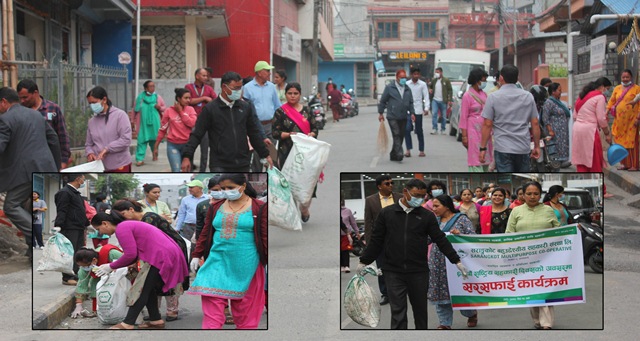 संस्थाले स्थानीय संगम मार्ग, न्युरोड एरियामा सफाई संगै सफाई सचेतना गराएको थियो ।