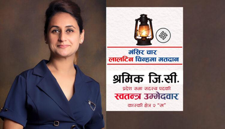 पोखरा । कास्की क्षेत्र नं. २ ‘ख’बाट प्रदेश सभा सदस्यमा स्वतन्त्र उम्मेदवारी दिएकी उम्मेदवार श्रमिक जि.सी.ले स्वास्थ्य क्षेत्रलाई प्रमुख प्राथमिकता दिएकी छन् ।