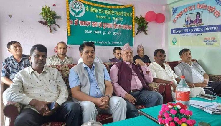 काठमाडौं । विराटनगर १३ मा रहेको श्री पव्लिक स्टार बहुउद्देश्यीय सहकारी संस्था २० औं साधारण सभा सम्पन्न भएको छ ।
