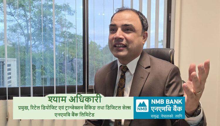 युबा बैंकर श्याम अधिकारीसँग बैंकिङ क्षेत्रमा करिब १७ वर्षको अनुभव छ । पछिल्लो समय उनी बिगत १० वर्षदेखि एनएमबी बैंकमा कार्यरत छन् । बैंकको प्रदेश प्रमुखदेखि केन्द्रीय कार्यालयको विभिन्न विभागमा महत्वपूर्ण जिम्मेवारी सम्हालिसकेको अनुभव अधिकारीसँग छ । हाल एनएमबी बैंकको रिटेल डिपोजिट, ट्रान्जेक्सन बैंकिङ र डिजिटल सेल्स डिपार्टमेन्टको प्रमुख भएर उनले काम गरिरहेका छन् । यसै क्रममा अधिकारीसँग बैंकले उनको विभाग तथा सम्बन्धित क्षेत्रमा गरिरहेका कामहरु, ग्राहक सेवा, योजना तथा प्रडक्टहरु र रणनीति तथा डिजिटलाइजेशनमा नयाँ प्रयोग लगायत अन्य विविध विषयमा केन्द्रित रहेर आर्थिक आवाजले गरेको कुराकानी :