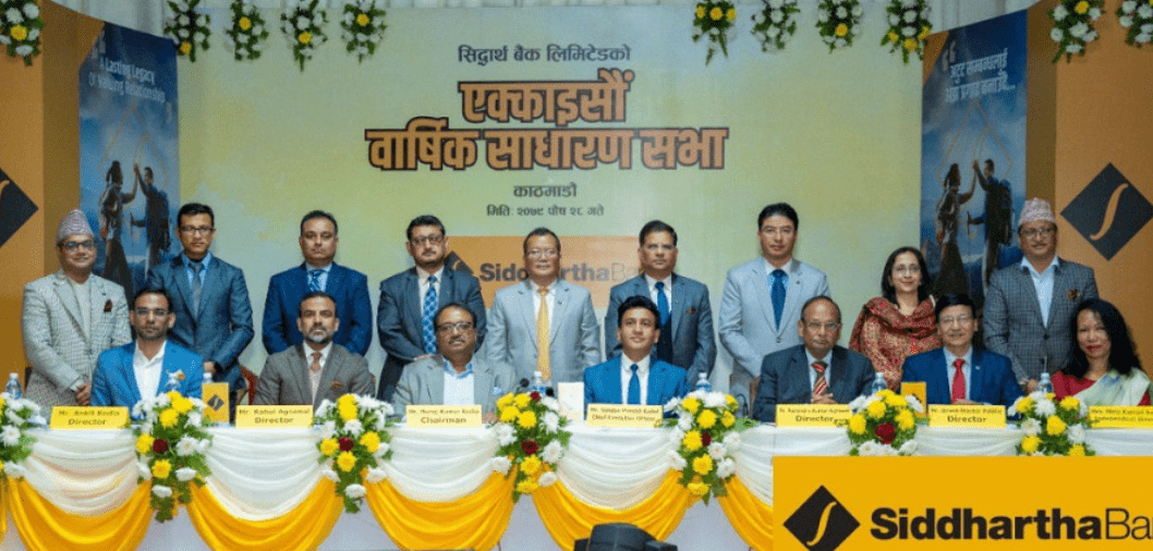 काठमाडौं । सिद्धार्थ बैंकको २१ औं वार्षिक साधारण सभाबाट यसअघि घोषित लाभांश पारित भएको छ। आज भद्रकालीस्थित आर्मी अफिसर्स क्लबमा अध्यक्ष मनोज कुमार केडियाको अध्यक्षतामा बसेको साधारणसभाले उक्त लाभांश पारित गरेको हो ।