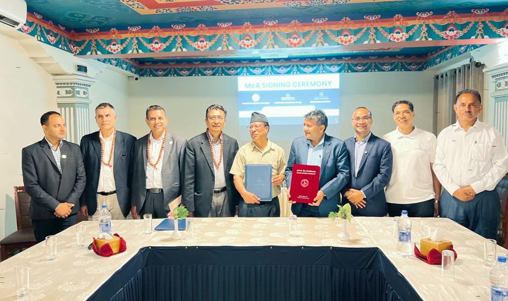काठमाडौँ । लुम्बिनी बौद्ध विश्वविद्यालय र सिद्धार्थ बिजिनेस ग्रुप अफ हस्पिटालिटी अन्तर्गतको सिद्धार्थ इन्स्टिच्युट अफ हस्पिटालिटीबीच ब्याचलर इन् हस्पिटालिटी एण्ड् टुरिजम म्यानेजमेन्ट (बिएचटिएम) अध्ययन गर्ने विद्यार्थीलाई बौद्ध दर्शनसमेतको सैद्धान्तिक र व्यवहारिक ज्ञानका साथ पढ्दै कमाउँदै गर्ने अवसर प्रदान गर्ने विषयमा सम्झौता सम्पन्न भएको छ ।