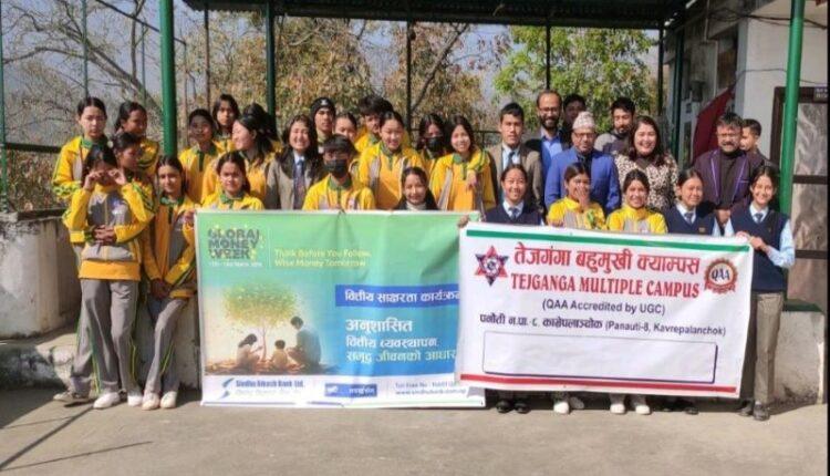 काठमाडौं । सिन्धु विकास बैंक लिमिटेडको आयोजनामा तेजगंगा बहुमुखी क्याम्पसमा वित्तीय साक्षरता कार्यक्रम भएको छ । बैंकको वार्षिक कार्ययोजना तथा विश्व वित्तीय सप्ताह २०२५, अन्तर्गत शाखा कार्यालय पनौती काभ्रेको आयोजनामा वित्तीय साक्षरता कार्यक्रम आयोजना गरिएको हो ।