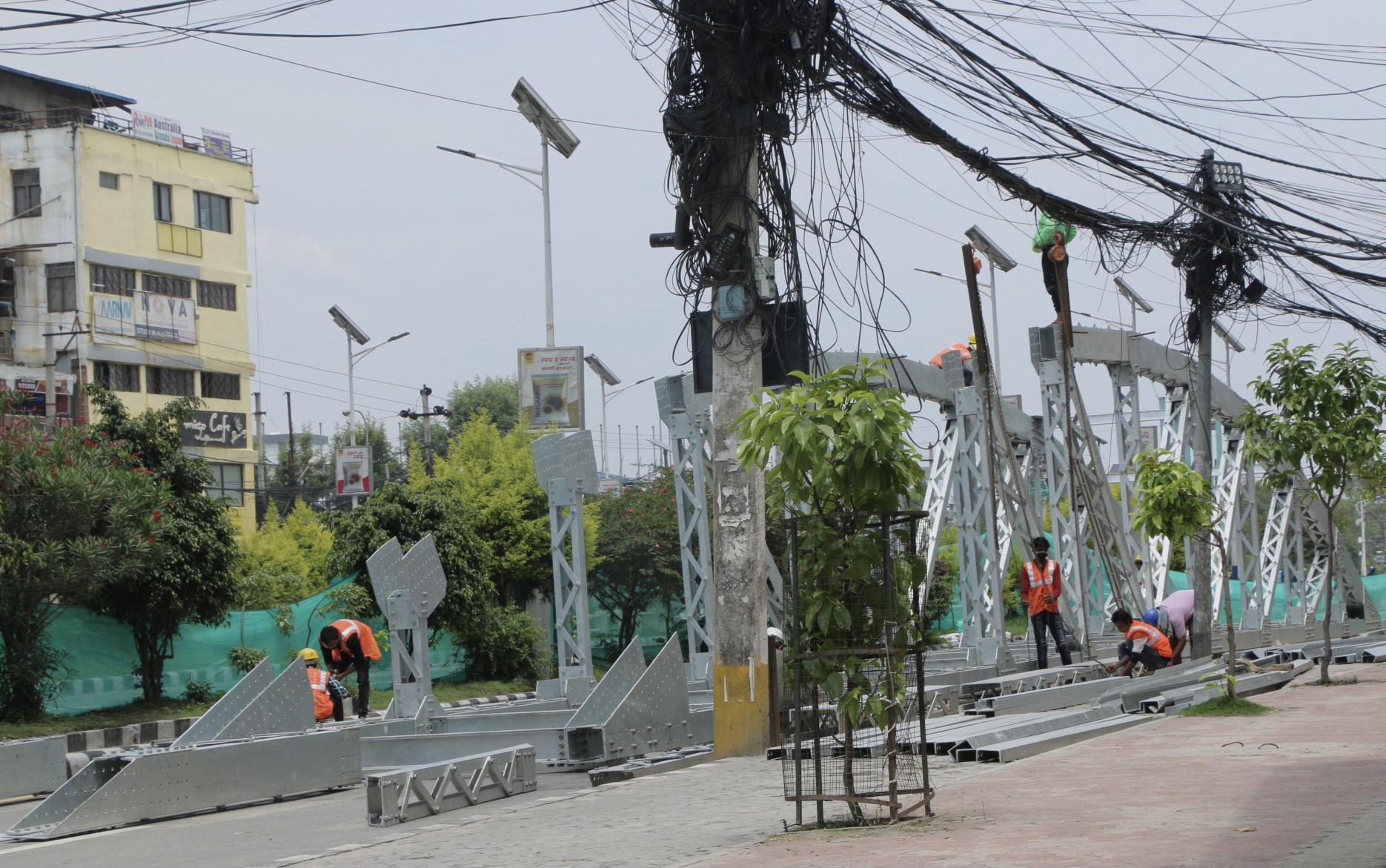 काठमाडौं । काठमाडौंको नयाँबानेश्वर चोकमा फलामको आकाशे पुल राख्न जडान गर्दै प्राविधिक । तस्वीर: चन्द्रकला क्षेत्री, रासस काठमाडौँको नयाँबानेश्वर चोकमा फलामको आकाशे पुल राख्न जडान गर्दै प्राविधि । तस्वीर ः चन्द्रकला क्षेत्री, रासस