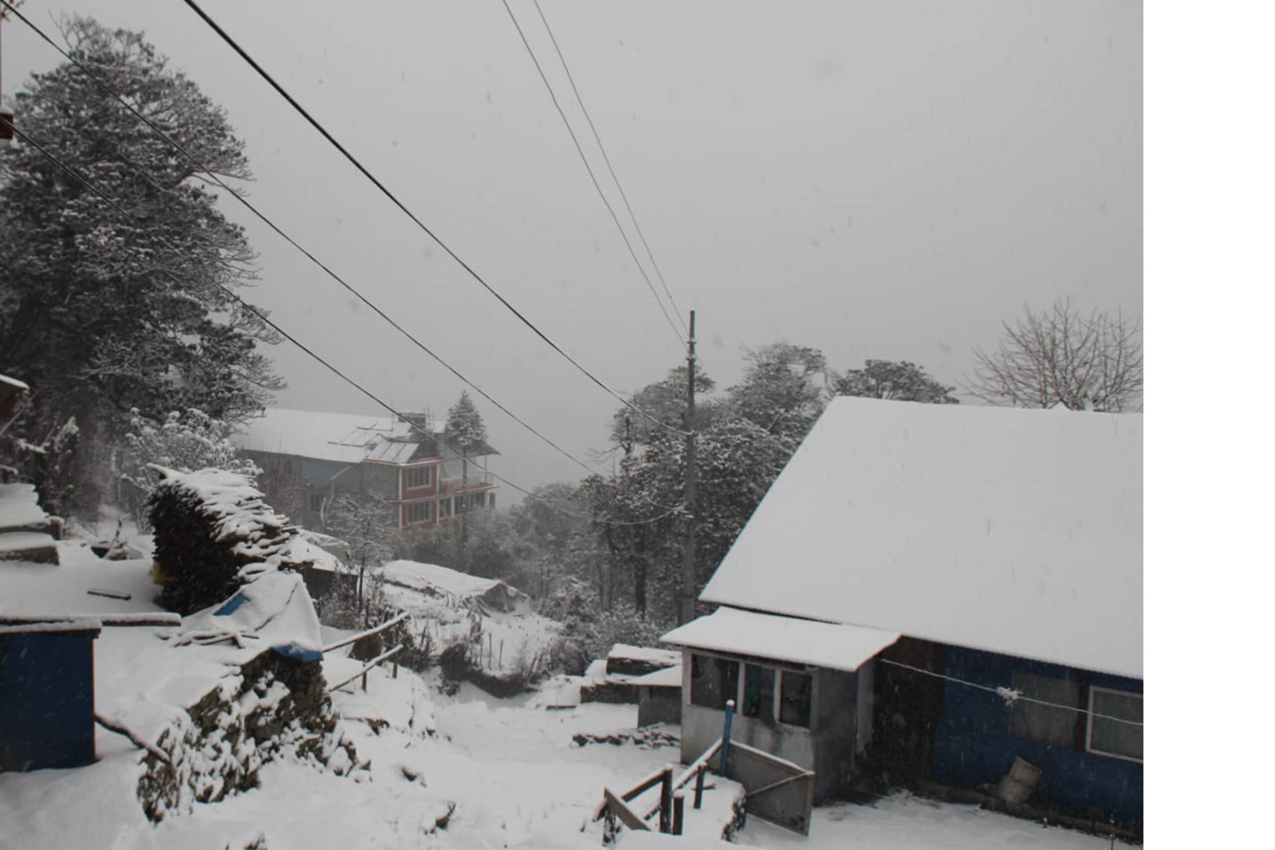 हिमपातका कारण तल्लो डोल्पास्थित मुड्केचुला गाउँपालिका –५ शुरमा रहेका गाउँहरु सेताम्य भएका छन् । म्याग्दीको अन्नपूर्ण गाउँपालिका–६ मा पर्ने घोडेपानीमा शुक्रबार भएको हिमपात । हिमपातका कारण म्याग्दीको लेकाली बस्तिको जनजिबन प्रभावित भएको छ । सुदूरपश्चिम प्रदेशको पर्यटकीय स्थल खप्तड प्रवेश द्धारमा परेको हिमपात भएको छ । बिहीबारदेखि हिमपात भइरहेको खप्तडमा करीब दुई फिट हिउ जमेको छ ।