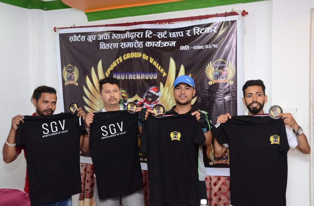 काठमाडौं । स्पोर्ट ग्रुप अफ भ्यालीले आधिकारिक लोगो र टिसर्ट सार्वजनिक गरेको छ ।स्पोर्ट वाइक प्रयोगकर्ताहरुको समुह स्पोर्ट ग्रुप अफ भ्यालीले आइतबार एक कार्यक्रमको आयोजना गरी आधिकारिक लोगो र टिसर्ट सार्वजनिक गरेको हो ।