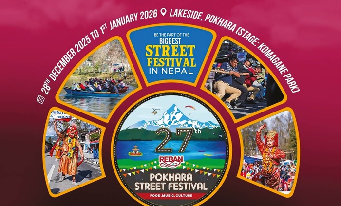 पोखरा । नेपालको पर्यटकीय राजधानी पोखरा अङ्ग्रेजी नयाँ वर्षको अवसरमा पुनः एकपटक राष्ट्रिय तथा अन्तर्राष्ट्रिय आकर्षणको केन्द्र बनेको छ । रेष्टुरेन्ट एण्ड बार एशोसियसन नेपाल (रेवान) पोखराको आयोजनामा हुन लागेको २७औँ पोखरा सडक महोत्सव सुरु भएको छ । अङ्ग्रेजी नयाँ वर्षलाई लक्षित गर्दै आयोजना गरिएको यो महोत्सवले पोखरालाई नयाँ वर्ष मनाउने प्रमुख गन्तव्यका रूपमा स्थापित गर्दै आएको छ ।