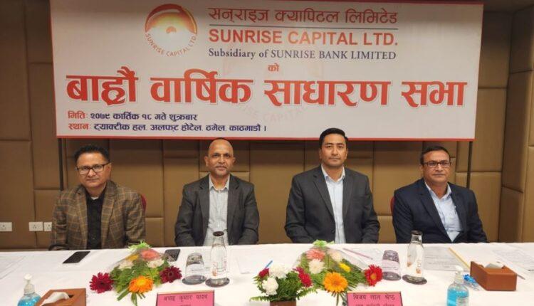 सन्राईज बैंकको पूर्ण स्वामित्वमा बैंकको सहायक कम्पनीका रुपमा संचालित सन्राईज क्यापिटल लिमिटेडले आफ्नो १२औं वार्षिक साधारण सभा अलफ्ट होटल ठमेल काठमाडौंमा सम्पन्न गरेको हो ।