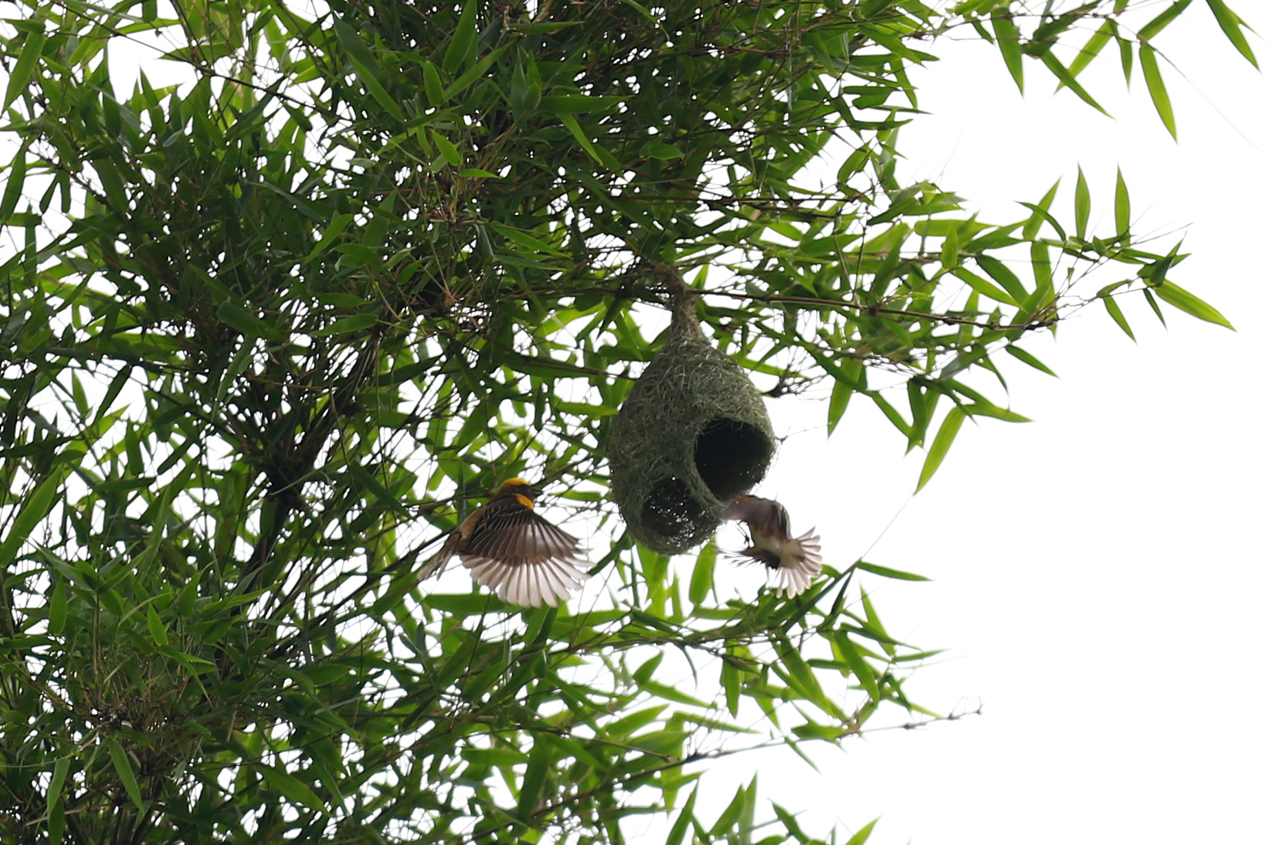 ललितपुरको धापाखेल क्षेत्रको बाँसघारीमा गुँड बनाउन ब्यस्त तोप चरा । गुँड बनाउने आकर्षक कलाले गर्दा तोप चरालाई इन्जिनियर चरा पनि भनिन्छ । प्रजनन समयमा तोप चरा विभिन्न ठाउँबाट काठमाडौँ आउँछन् र भालेले पोथी फकाउन निकै मेहनतले गुँड बनाउँछन् ।