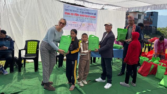 टेम्पल ट्री रिसोर्टद्वारा विद्यार्थीलाई न्यानो कपडा तथा शैक्षिक सामग्री प्रदान