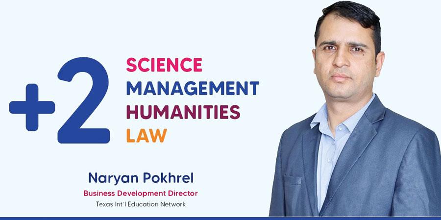 मन्टेश्वरीदेखि प्लस टु तथा उच्च शिक्षाको लागि टेक्सास उत्कृष्ट शैक्षिक गन्तव्य बन्न सफल भएको बताउँछन्, कार्यकारी अध्यक्ष भेषराज पोखरेल । टेक्सास इन्टरनेशनल सेकेन्डरी स्कुल तथा कलेज विद्यार्थी माझ एक उत्कृष्ट शैक्षिक संस्थाको परिचय बनाउन सफल रहेको पोखरेलले बताए । ‘टेक्सासमा विद्यार्थीको आकर्षण छ,’ उनले भने, ‘प्रि मन्टेश्वरीदेखि उच्च शिक्षासम्म अध्ययन गर्नका लागि विद्यार्थीको रोजाईमा टेक्सास पर्न सफल छ ।’