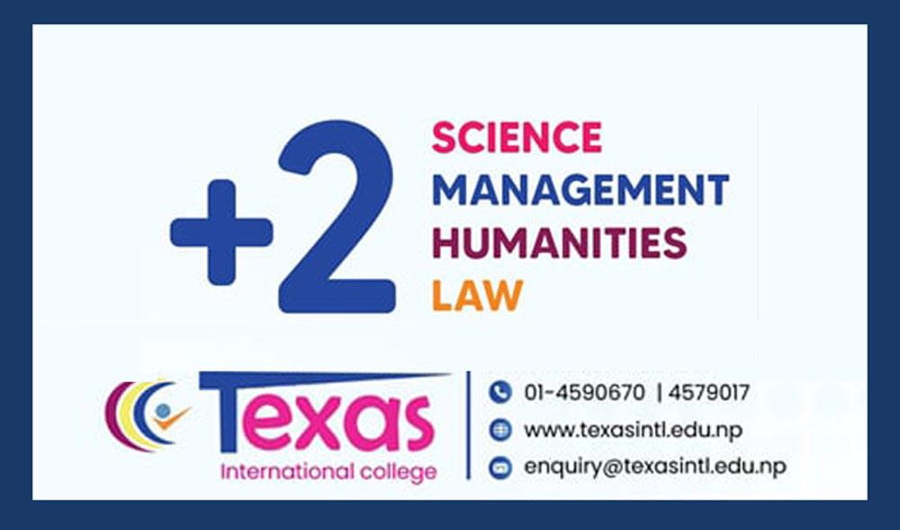 टेक्सास कलेज विद्यार्थीको रोजाईको कलेज बन्न सफल भएको छ । स्वदेशमै अन्तर्राष्ट्रियस्तरको शिक्षा लिन चाहने विद्यार्थीहरु कलेजमा आकर्षित हुने गरेका छन् । विशेषगरी एसईई उत्तीर्ण विद्यार्थीहरु आफ्नो प्लस टु अध्ययनको यात्रा अगाडि बढाउन टेक्सास भर्ना हुनका लागि लालायीय हुने गर्दछन् । प्लसटुतर्फ कलेजले साइन्स, म्यानेजमेन्ट, हुमानिटिज र ल को पठाई सञ्चालन गरिरहेको छ