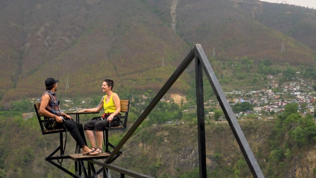 एक पटकमा दुई जना बस्न मिल्ने स्काइ चियर नदीबाट २ सय ५० मिटर अग्लो भएको कम्पनीका अध्यक्ष राजु कार्कीले बताए। रिपोर्ट परिसरमै हाइ रोप स्टेसनको निर्माण धमाधम भइरहेको छ।