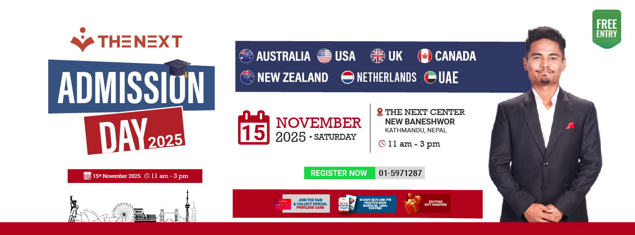 नोभेम्वर १५ शनिबारका दिन नयाँ बानेश्वरको द नेक्स्ट सेन्टरमा विहान ११ बजेदेखि दिउँसो ३ बजेसम्म एडमिसन डे आयोजना हुनेछ ।