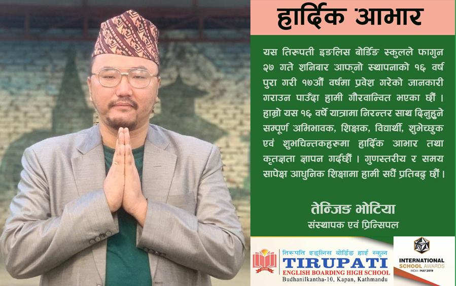 तिरुपति इङ्लिस बोर्डिङ हाइ स्कुल १७ औं वर्षमा प्रवेश, गुणस्तरीय शिक्षामा प्रतिबद्धता