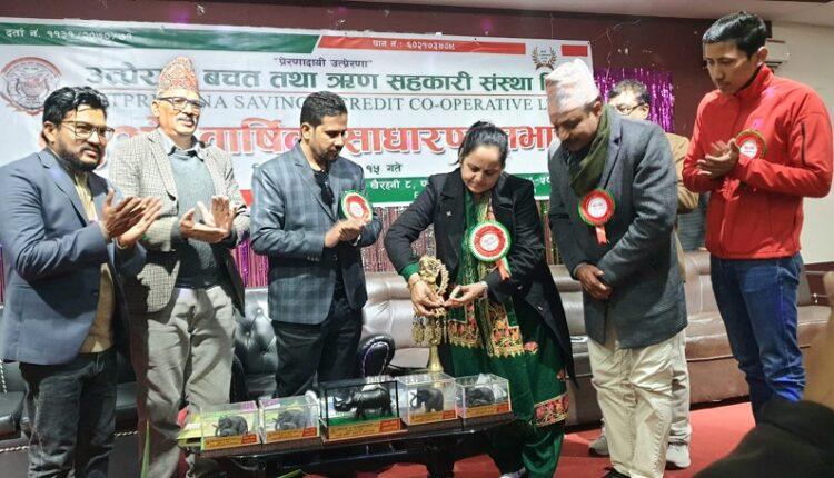 चितवन । खैरहनी नगरपालिका स्थित उत्प्रेरणा बचत तथा ऋण सहकारी संस्था लिमिटेडको दशौं वार्षिक साधारणसभा सम्पन्न भएको छ। संस्थाका अध्यक्ष कृष्णप्रसाद अधिकारीको अध्यक्षतामामा भएको साधारणसभामा खैरहनी नगरपालिकाका उप-प्रमुख कविता उप्रेती प्रमुख आतिति रहेकी थिइन् ।