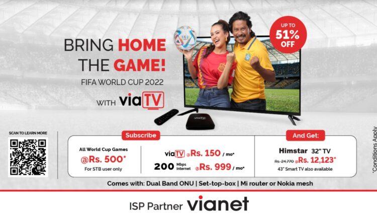 यो अफर नोभेम्बर २० मा सुरु हुने फुटबल विश्वकपको प्रतिक्षामा रहेका सबै फुटबल फ्यानहरूका लागि विशेष रहन सक्छ। भायाटिभी, नेपालको अग्रणी इन्टरनेट सेवा प्रदायकमध्येको एक भायानेट कम्युनिकेसन्सको आई.पि.टि.भी. सेवा हो।