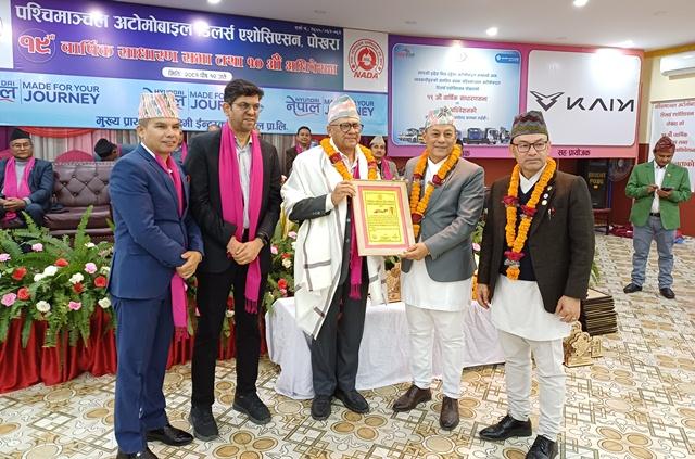 पोखरा । अग्रज अटोमोबाइल व्यवसायी विश्वबन्धु थापा सम्मानित भएका छन् । पश्चिमाञ्चल अटोमोबाइल डिलर्स एसोसिएसनको १९औं साधारणसभा तथा दसौं अधिवेशनको अवसरमा थापालाई सम्मान गरिएको हो ।