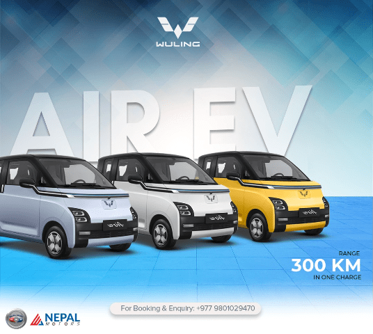 काठमाडौं । बज्र ग्रुपअन्तर्गतको कम्पनी ईभी नेपाल मोटर्स प्रालिले लेभ्निङ ब्रान्डको इलेक्ट्रिक स्कुटर तथा वुलिङ ब्रान्डको इलेक्ट्रिक कार विक्री वितरण गर्दै आइरहेको छ ।