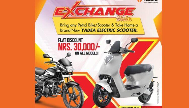 काठमाडौं । नेपालका लागि याडिया विद्युतीय स्कुटरको आधिकारिक बिक्रेता कुजु नेपाल प्रालिले ‘याडिया एक्सचेन्ज मेला’ सुरु गरेको छ। मेलामा कम्पनीले ३० हजार नगद छुटको व्यवस्था रहेको जनाएको छ।
