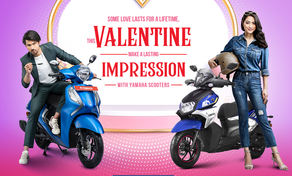 काठमाडौं । लोकप्रिय टु ह्विलर ब्राण्ड यामाहाले ‘भ्यालेन्टाइन अफर’ ल्याएको छ । यामाहाको लागि नेपालको एक मात्रै आधिकारिक बिक्रेता एम.ए.डब्लु. इन्टरप्राइजेजले यामाहाका स्कुटर खरिदमा लागु हुने गरी अफर ल्याएको प्रा.लि.का प्रमुख कार्यकारी अधिकृत राजु क्षेत्रीले जानकारी दिए ।
