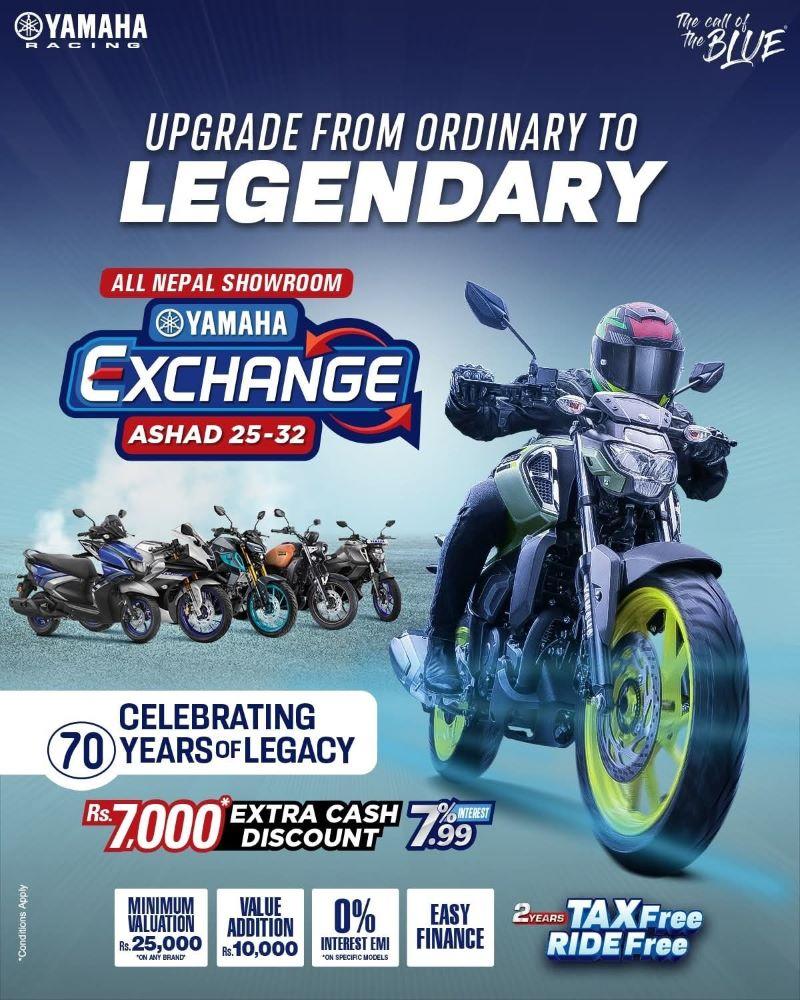 यामाहाको ७० औँ वार्षिकोत्सव, देशव्यापी एक्सचेन्ज अफर
