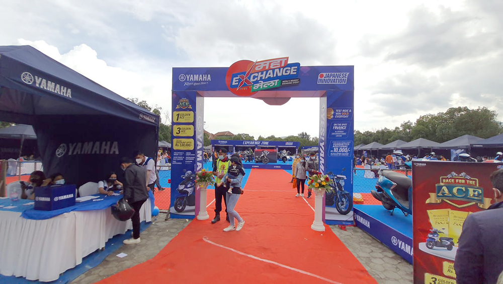 काठमाडौं । भृकुटीमण्डप काठमाडौंमा यामाहाको एक्स्चेन्ज मेला जारी छ । मेलामा दर्शकहरुको उत्साहजनक सहभागिता रहेको यामाहाका लागि नेपालको आधिकारिक बिक्रेता एमएडब्लु इन्टरप्राइजेजकले जनाएको छ । मेला असोज १५ गतेसम्म जारी रहनेछ ।
