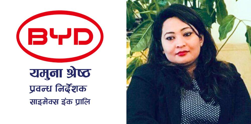 संभावना भएर पनि रोजाइ बन्न नसकेको इलेक्ट्रिक भेइकल (इभी) संसारभर आकर्षणको सवारी बनेको छ । इभीको विश्वव्यापी प्रभाव नेपाली बजारमा समेत देखिएको छ । नेपाली बजारमा इभी देखिन थालेको धेरै भएको छैन । इभीले नेपाली बजारमा ठाउँ जति लिएको छ, त्यस पछाडि इभी व्यवसायीको सानो लगाव र त्याग छैन । नेपाली बजारमा इभीलाई स्थापित गर्ने अभियानमा सुरु देखि नै सक्रिय बिवाइडीका लागि नेपालको आधिकारिक बिक्रेता साइमेक्स इंक प्रालिका प्रवन्ध निर्देशक एवं नाडाका कार्यसमिति सदस्य यमुना श्रेष्ठसँग इभीका सन्दर्भ भित्र रहेर आर्थिक आवाजले कुराकानी गरेको छ । कुराकानीको सम्पादीत अंश :